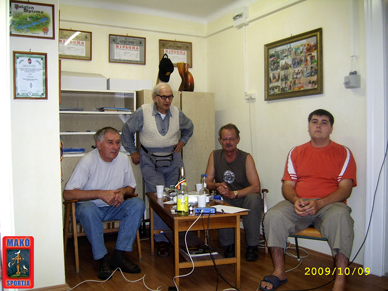 (b>j): Rácz Mihály (HA8EB), Szűcs János (HA8DL), Joop Lankhaar (PA1JLG) holland rádióamatőr, Szűcs Péter. A rádióamatőrök a Klub Internet modemének beüzemelése szünetében láthatók.