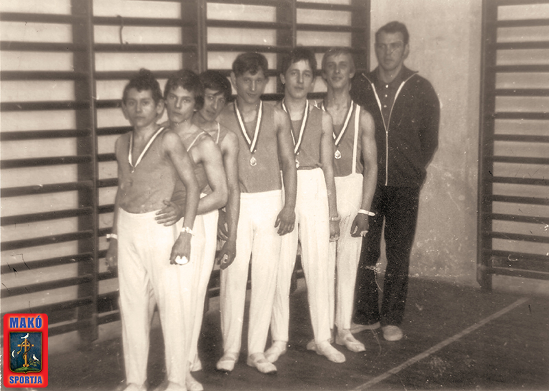 Balról: R. Szabó János, Stenszky Miklós, Balázs Mihály, Ismeretlen, Erdei József, Ismeretlen, valamint Stenszky Csaba testnevelő tanár.